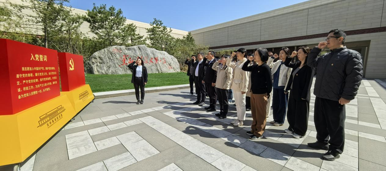 在庄严肃穆的关中革命纪念馆,党员们透过珍贵的历史文物、详实的图文资料和生动的场景复原系统回顾了关中地区波澜壮阔的革命斗争历程。大家驻足凝视,深切感悟革命先辈在艰苦卓绝岁月中展现出的坚定信仰与不屈意志。参观结束后,全体党员面向鲜红的党旗,重温入党誓词,铿锵有力的誓言表达了同志们不忘初心,牢记使命的坚定信念。